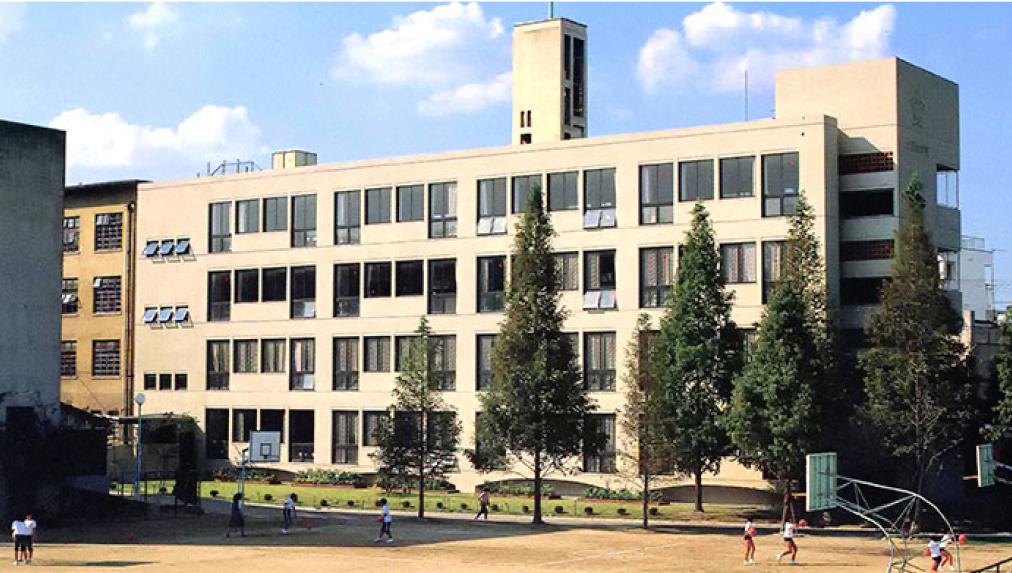 創立110周年記念事業のひとつとして建て替えられた校舎です。5階建てで、中学生の全ホームルームと、美術室、理科室などの特別教室を備えています。