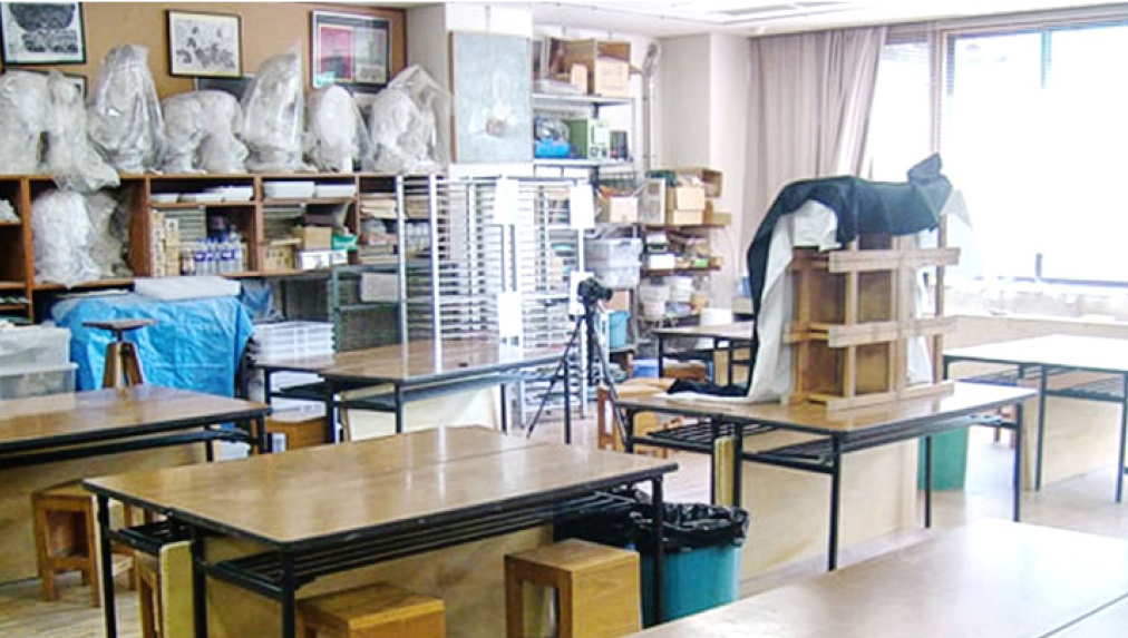 南校舎の1階にある美術室は、中高共有で使用します。絵画・彫刻・デザイン・陶芸など、多彩な作品を作れる設備が整っています。