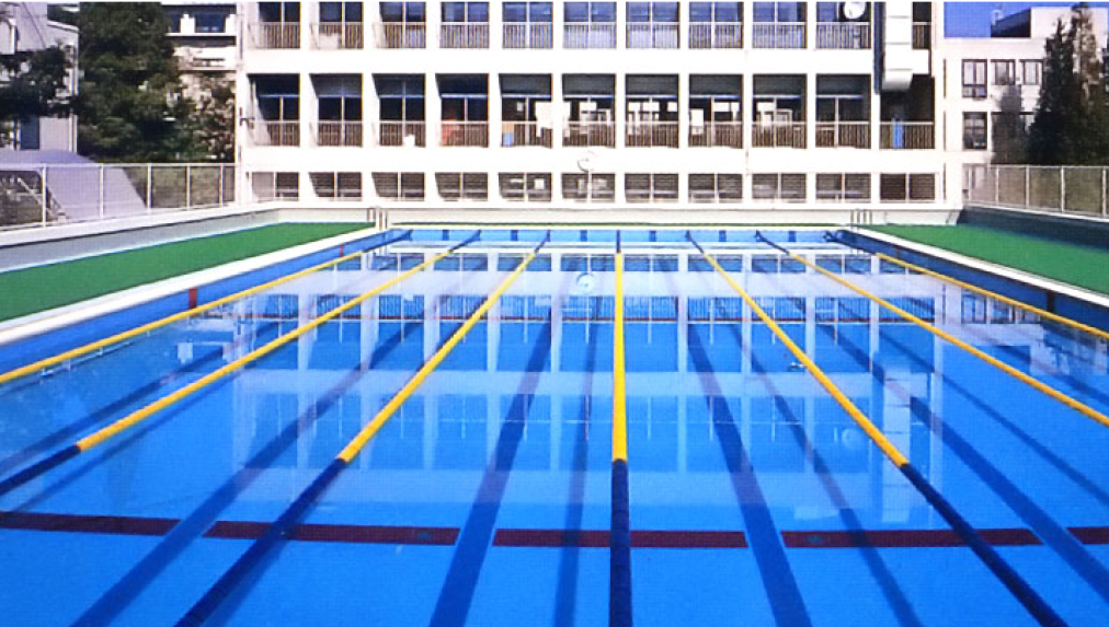 図書館の屋上にあるプールも、100周年記念事業で計画され、1989年に完成しました。体育の授業やクラブ活動などに使用されています。