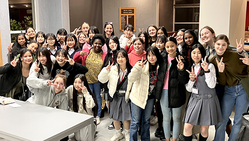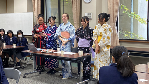 YFU(Youtu for Understanding)から、年間留学生を毎年受け入れています。さまざまな文化圏から集まった留学生との日常的な交流を通して、異文化理解と日本文化理解を深め、互いを尊重し合う心を養っています。また、オーストラリア・シドニーにある私立女子学校 Ravenswood School for Girlsと姉妹校提携を結んでいます。
