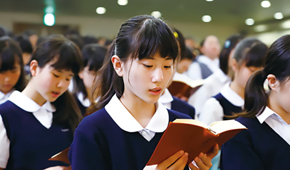 大阪女学院の学校生活は必ず礼拝から始まり、心静かに自分自身と向き合う時間があります。中学から高校までの全学年で必修科目として「聖書」の授業があるほか、修養会、伝道週間、クリスマスなどの宗教行事が教育活動の一環として行われます。本校の宗教教育は、一つの人格を持ち、自分と等しく価値ある存在として他者と共に生き、どのような状況の中でも真の喜びを持って生きる人間を育成することを目標としています。