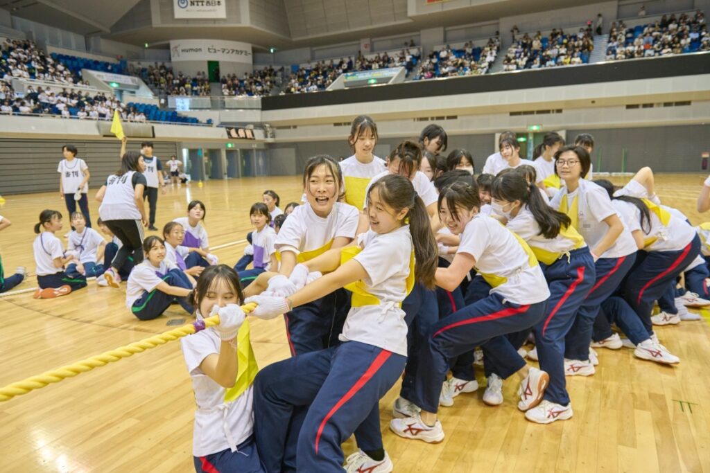 2025年6月5日、中高合同の体育大会が行われました。今年は昨年と同様、舞洲のおおきにアリーナにて行いましたが、生徒たちは競技に応援に係の仕事に、全力を出し切ることができました。